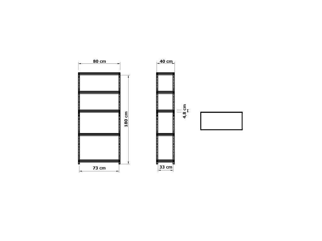 - A polc méretei: 180 cm × 80 cm × 40 cm (magasság × szélesség × mélység)