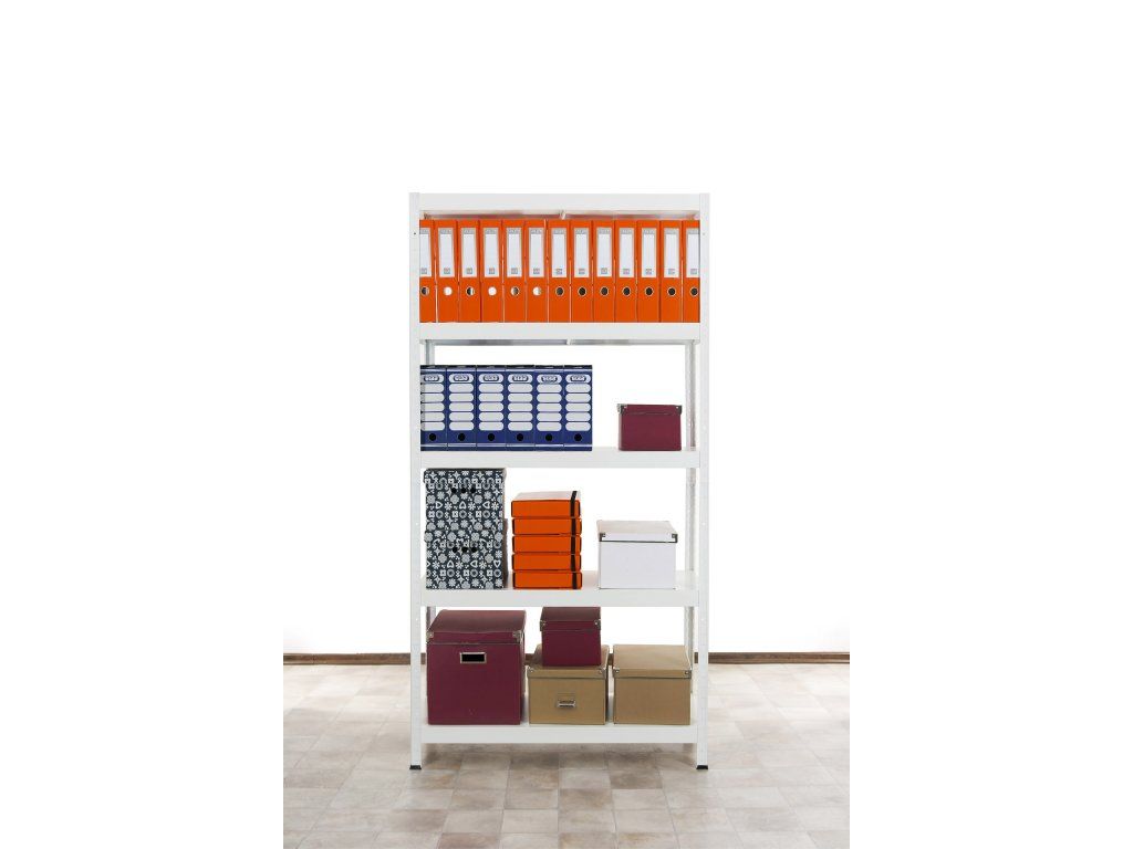 Fehérre festett fémpolc 180x90x40, 5 polc
