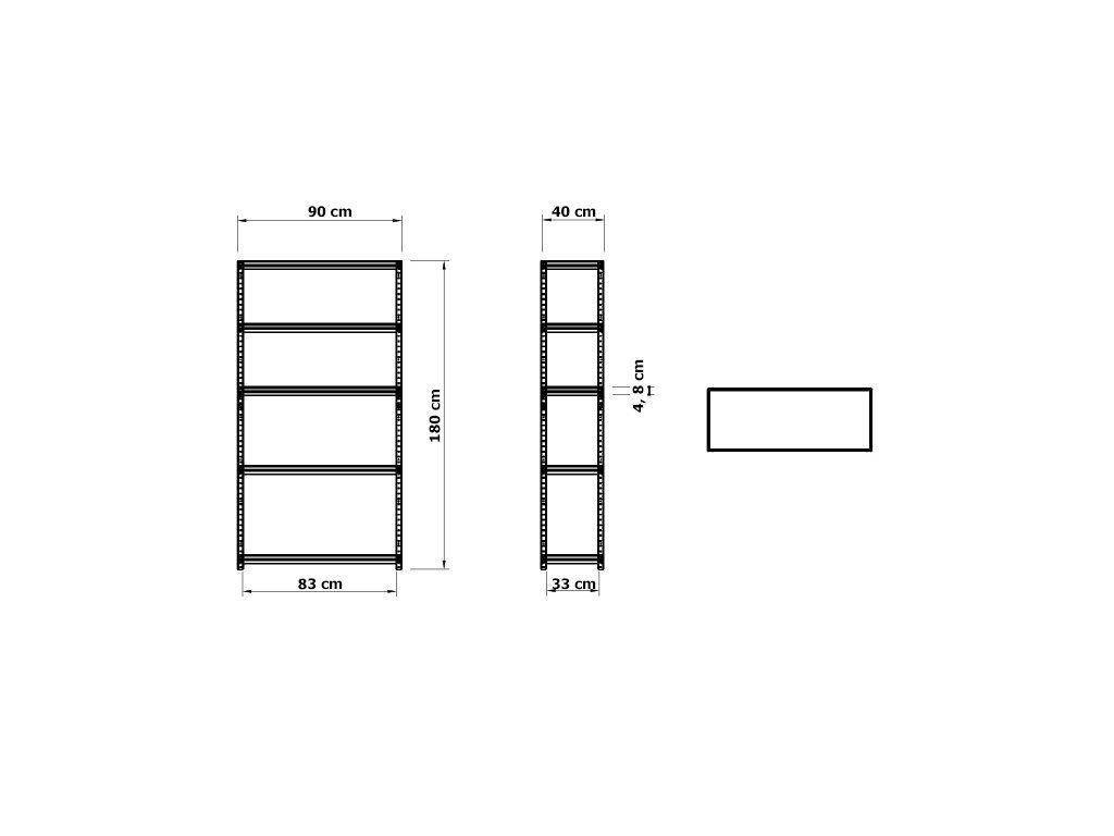 - A polc méretei: 180 cm × 90 cm × 40 cm (magasság × szélesség × mélység)